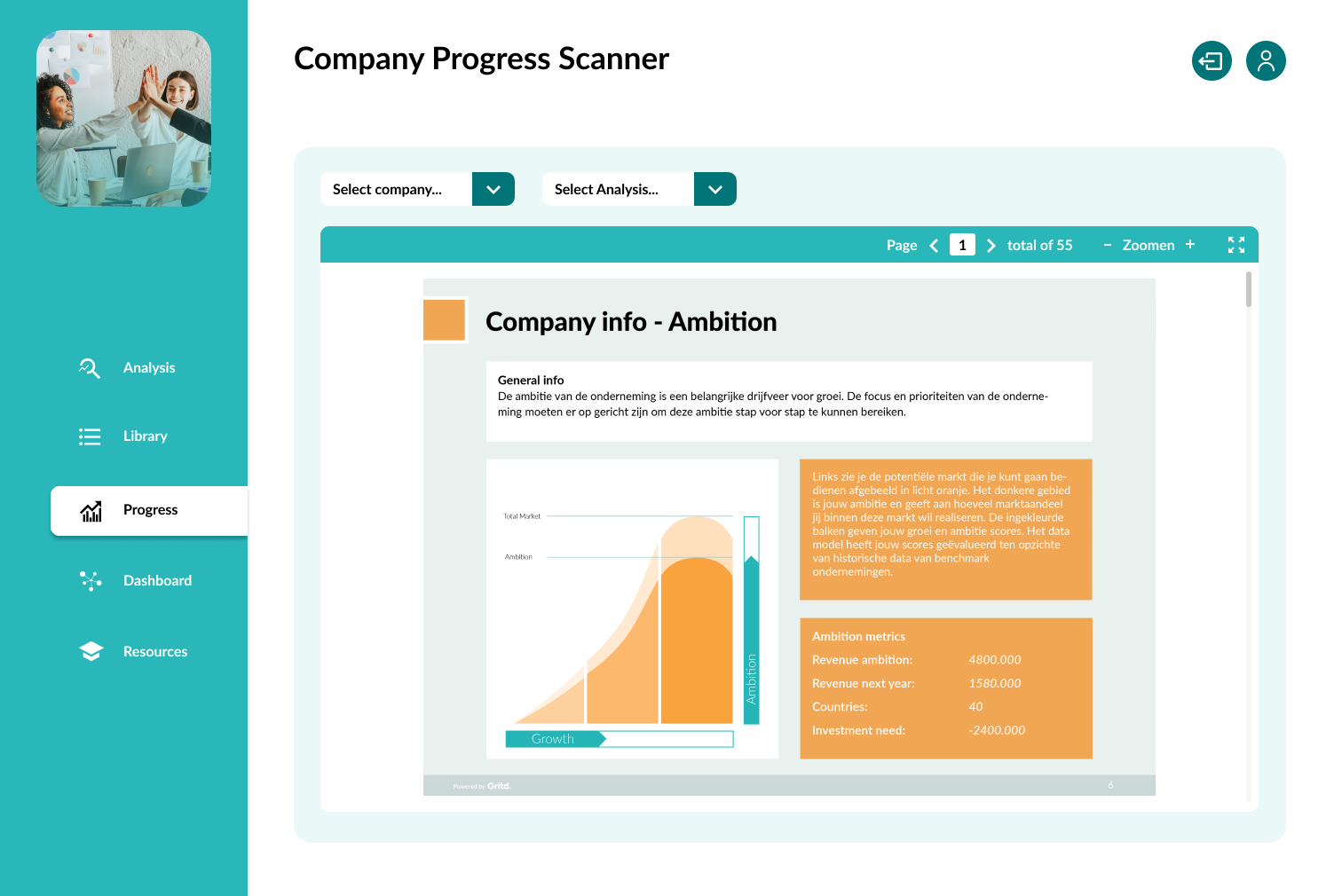 I worked on the design of a digital platform for Gritd that enables Regional Development Companies to apply the ConsistencyScan© in practice. The platform translates startup data into clear insights that support decision making and growth guidance.